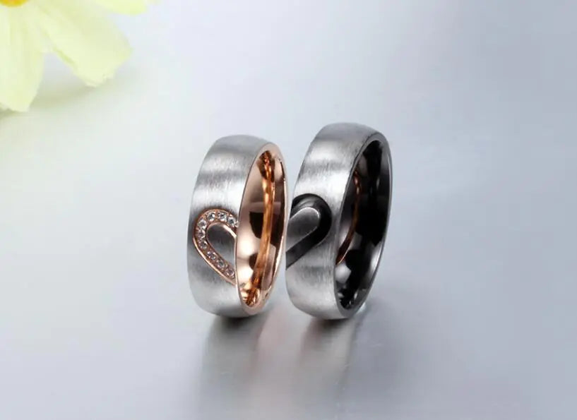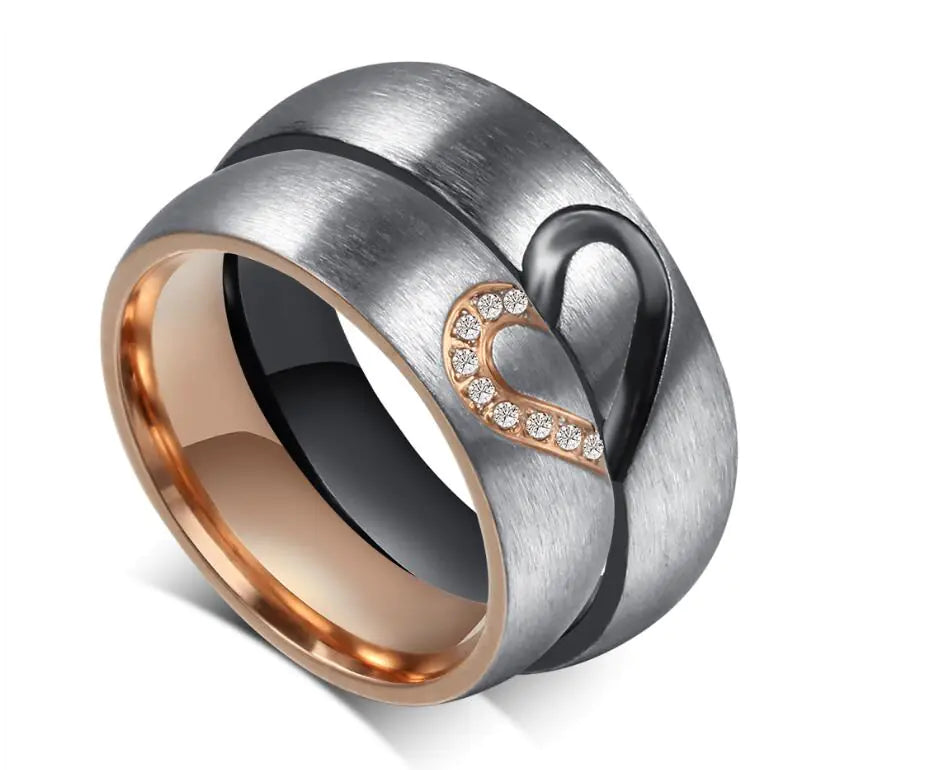 Discover the ultimate expression of love with our stunning couple's rings, featuring a romantic heart design adorned with sparkling diamonds. Crafted from high-quality stainless steel, these rings not only symbolize your bond but also provide lasting durability and shine.